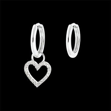 O singură creolă însoțită de brelocul său din aur alb sub formă de inimă încrustat cu diamante strălucitoare. Inelul brelocului are un diametru de 3,1mm.