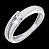 O montură sobră şi clasică subliniată de un inel dublu uşor întredeschis asupra unui diamant central.