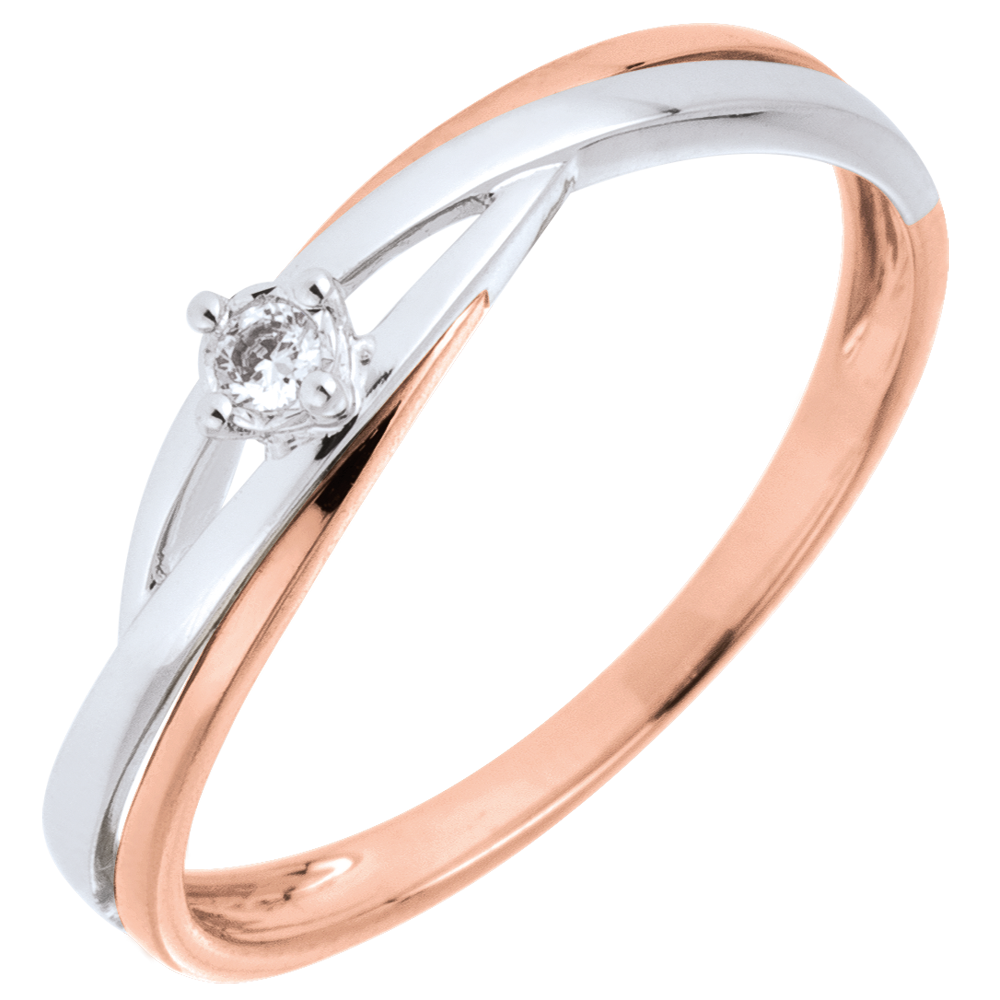 Această bijuterie îmbină cu rafinament modernitatea aurului alb cu căldura aurului roz, creând un duo de aururi care amplifică strălucirea diamantului.