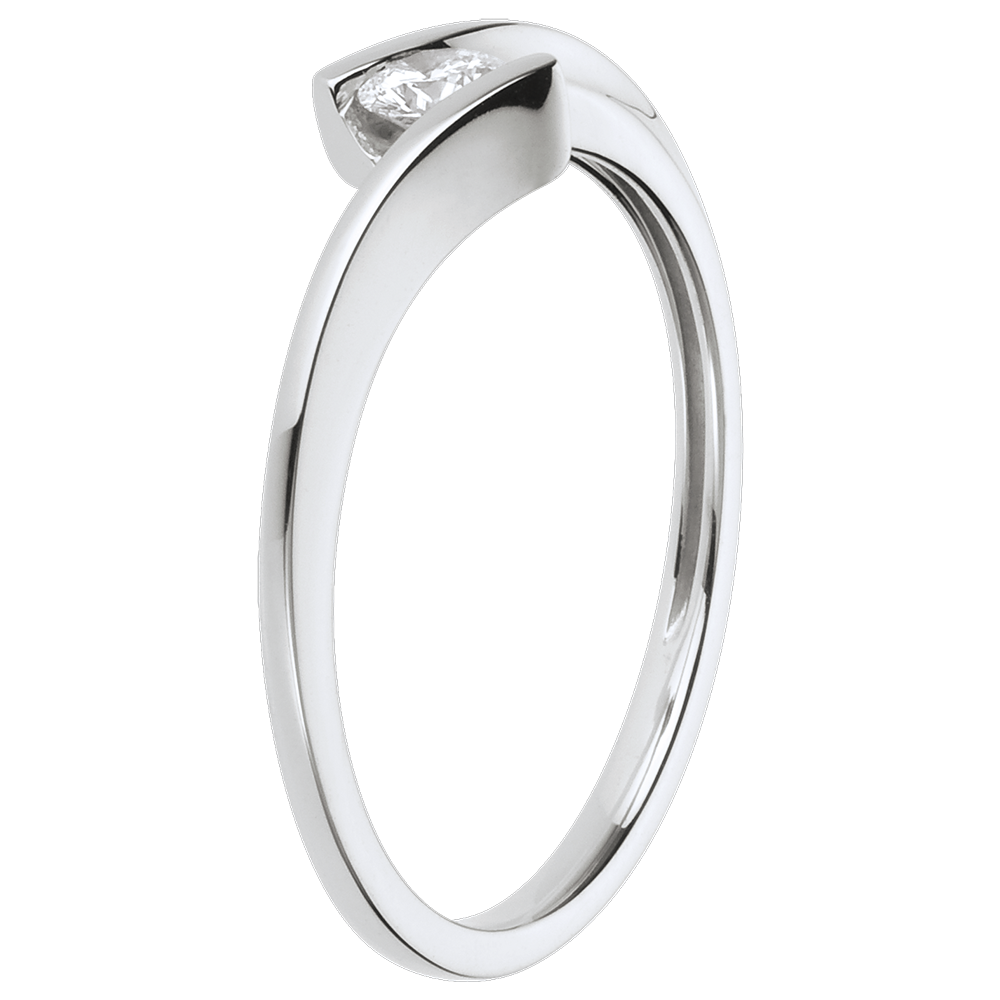 Un diamant solitaire încrustat în aur alb făcând să dispară totul în jurul acestei viziuni strălucitoare.