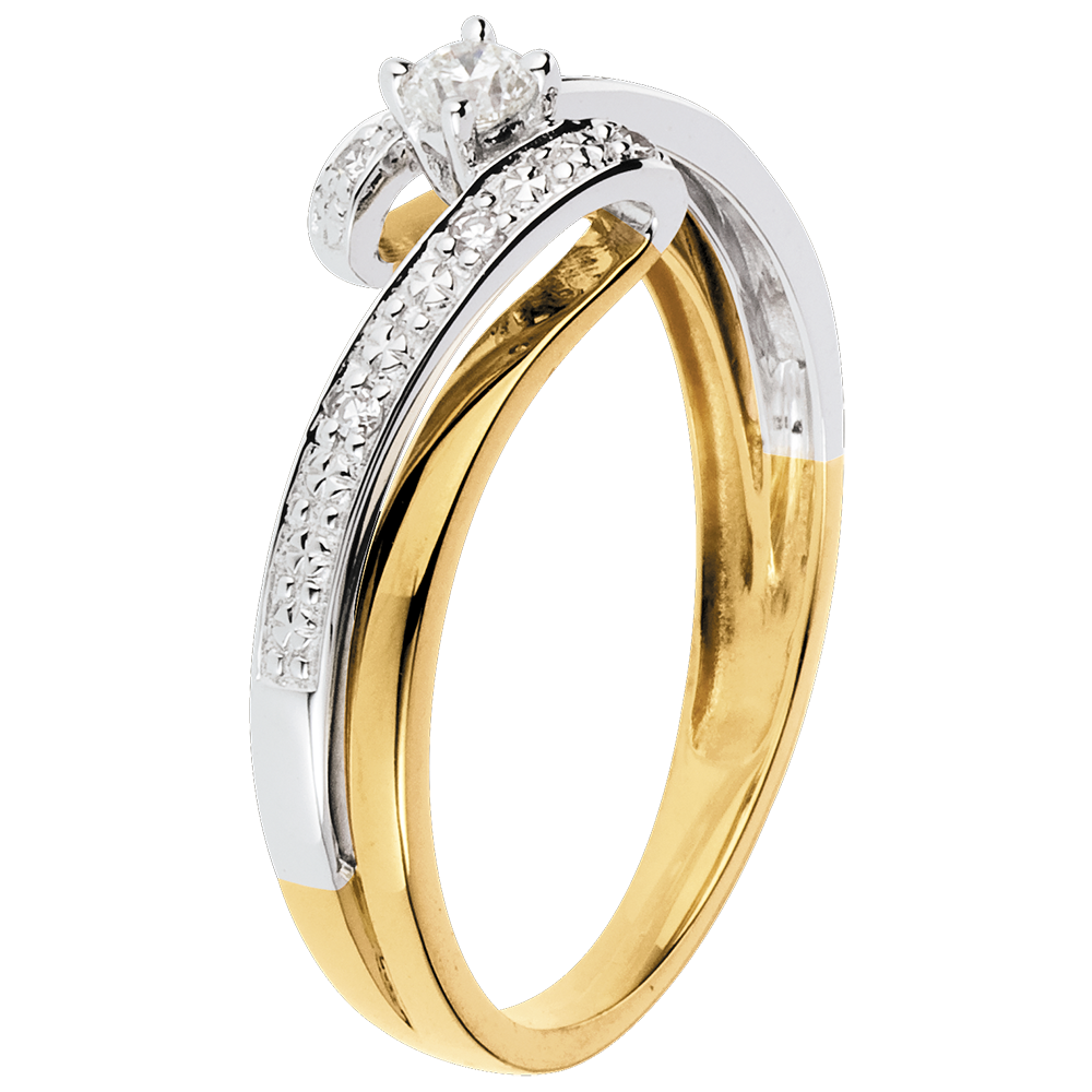 Solitaire Cuib Preţios - Sistem solar - diamant 0.08 carate - aur alb şi aur galben de 18K