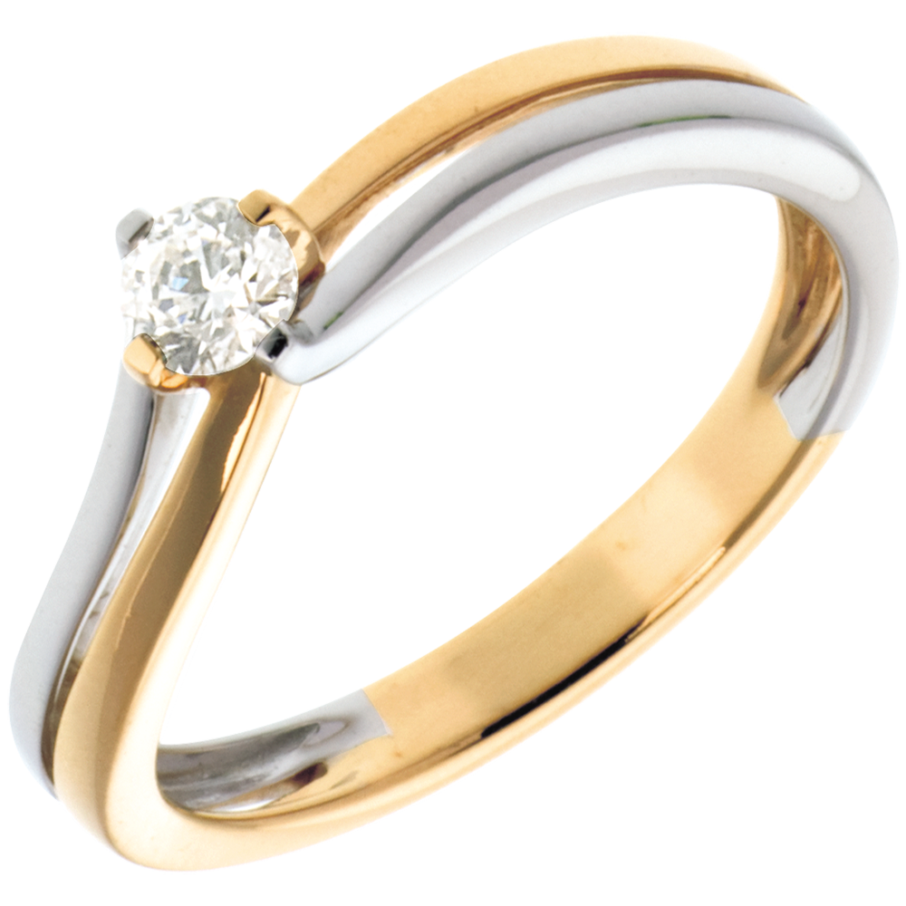Solitaire Fuziune - diamant 0.19 carate - aur alb şi aur galben de 18K