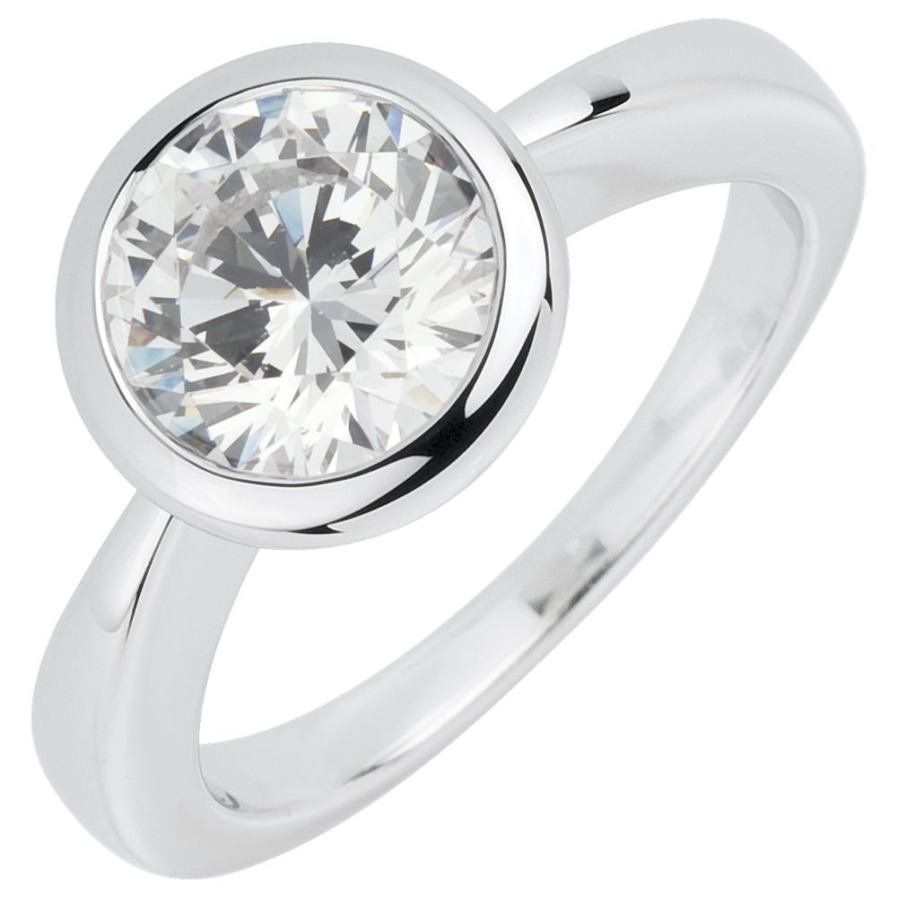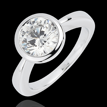 Un diamant solitaire răsfăţat şi protejat într-un cuib de aur alb