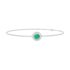 Brăţară Aur alb 18 carate - Smarald rotund 0.3 carate - Halo Diamant - Lanţ Zale