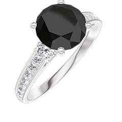 Inel Aur alb 18 carate - Diamant negru rotund 1 carate - Pietre laterale Diamant - Încrustare Diamant