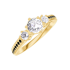 Inel Aur galben 18 carate - Diamant rotund 0.3 carate - Pietre laterale Diamant - Încrustare Diamant negru