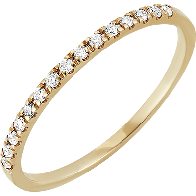 O verighetă din aur galben elegantă și atemporală, încrustată cu diamante delicate. Această verighetă este ideală pentru a însoți un inel de logodnă sau pentru a fi purtată singură.