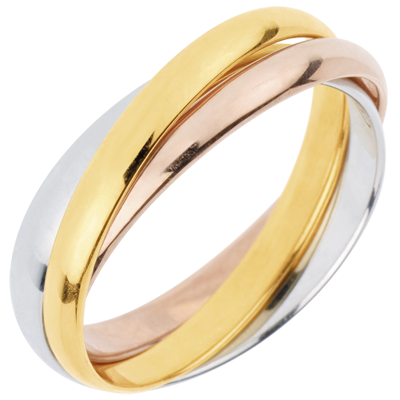 Un inel din aur galben, un inel de aur alb şi unul din aur roz sunt unite pentru eternitate.