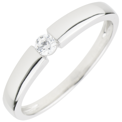 Un diamant fixat într-o montură din aur alb devenind un solitaire modern şi oferind un confort optim.