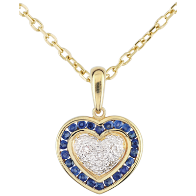 O inimă din aur alb încrustată cu 5 diamante este înconjurată de un pavaj de safire. Eternă, elegantă şi romantică.