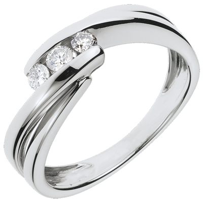 Inel Trilogie Cuib Preţios - Cântecel - aur alb de 18K - 0.21 carate - 3 diamante