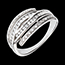 Recenziile clienților evidențiază frumusețea și originalitatea acestui inel lat din aur alb. Designul rafinat și strălucirea diamantelor sunt apreciate, precum și efectul său remarcabil pentru purtarea zilnică și ocazii speciale.