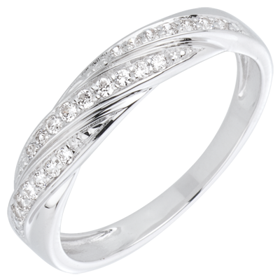Inel împletitură preţioasă din aur alb de 18K şi diamante
