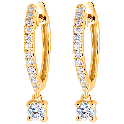 O pereche de creole semi-pavate din aur galben, ale cărei canafuri cu diamante adaugă o notă prețioasă și strălucitoare.