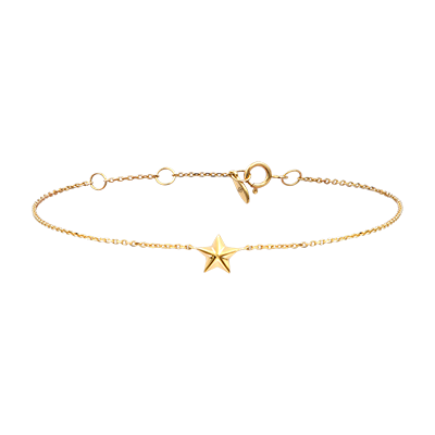 O stea stilizată, suspendată pe un lanț fin.O brățară cerească și strălucitoare, ca o dorință purtată direct pe piele.