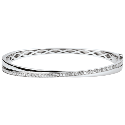 Brăţară fixă compusă dintr-un inel de aur alb subtil întreţesut cu un inel în întregime pavat cu diamante.