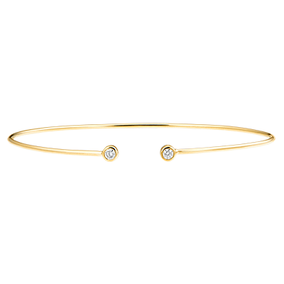 O brățară fixă, fină și elegantă împodobită cu două diamante delicate. Poate fi purtată singură sau împreună cu versiunile din aur alb și aur roz.