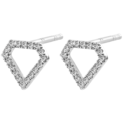 O pereche de cercei grafică şi minimalistă, cu contururi pavate care celebrează silueta unui diamant.
