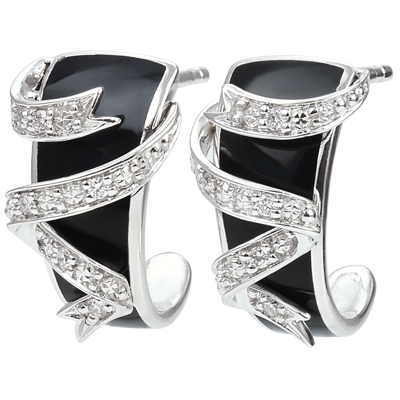 Cercei aur alb de 9K Clar Obscur - Panglică de stele - diamante şi lac negru
