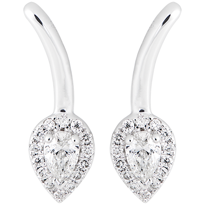 O pereche de cercei încrustați cu diamante, delicați și lejeri putând fi purtați pe lobul urechii sau ca cercei cu șurub.