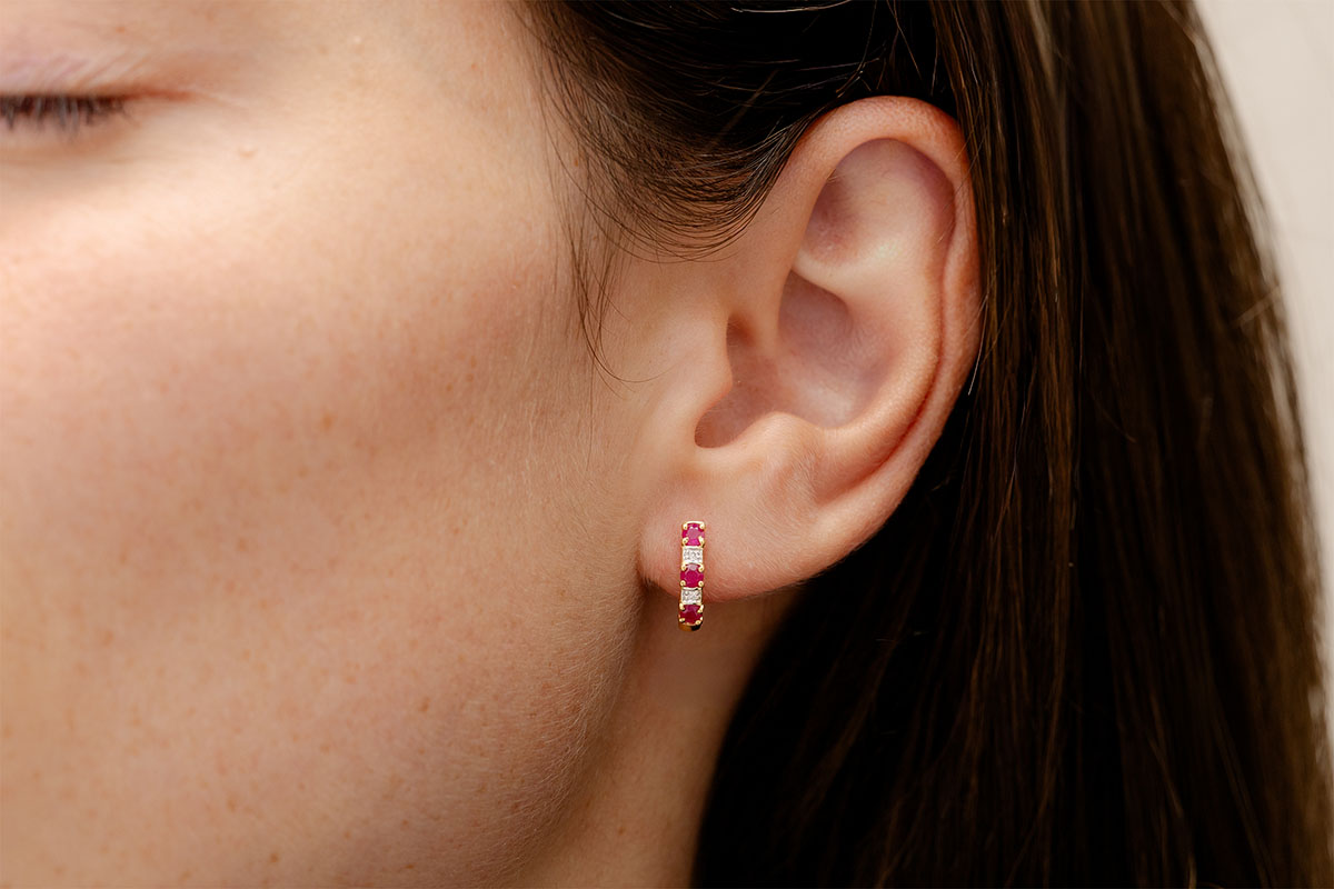 Cercei creole Clarisse - rubine- aur galben de 9K