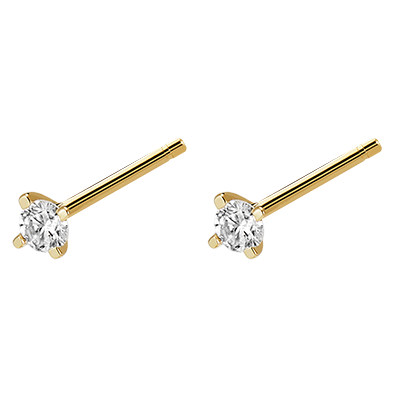 Strălucirea și prospețimea unei perechi de cercei cu șurub cu diamante încrustate în aur galben. Pot fi asociați cu alte motive, sau cu stiluri complet opuse.