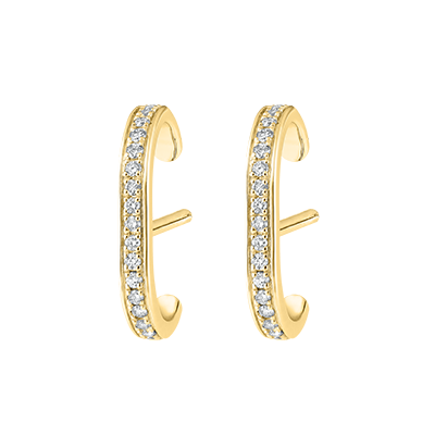 Acești delicați cercei cu șurub din aur alb pavați cu diamante ce scânteiază pe ureche asemeni un fulger.