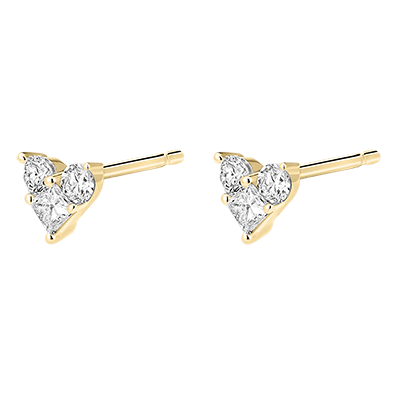 Două inimi pavate cu 3 diamante încrustate delicat pe un cercel cu șurub din aur galben. Acest simbol al bijuteriei este revizuit poetic de Edenly pentru cea mai intensă declarație de dragoste. Oh, lovely!