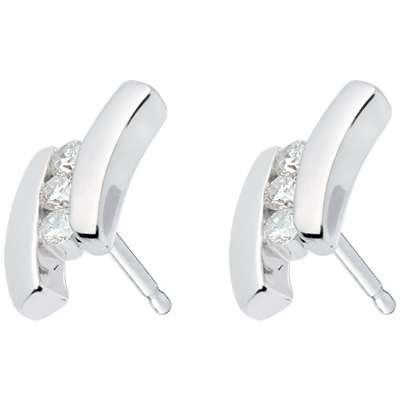 Cercei Cuib Preţios - Ghilimele - aur alb de 18K - 6 diamante