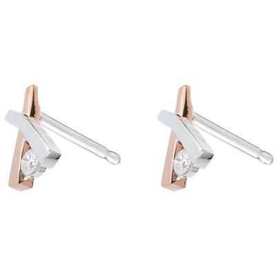 O cruce preţioasă de aur alb şi aur roz se unesc adăposteşte în inima ei un diamant pentru fiecare cercel.