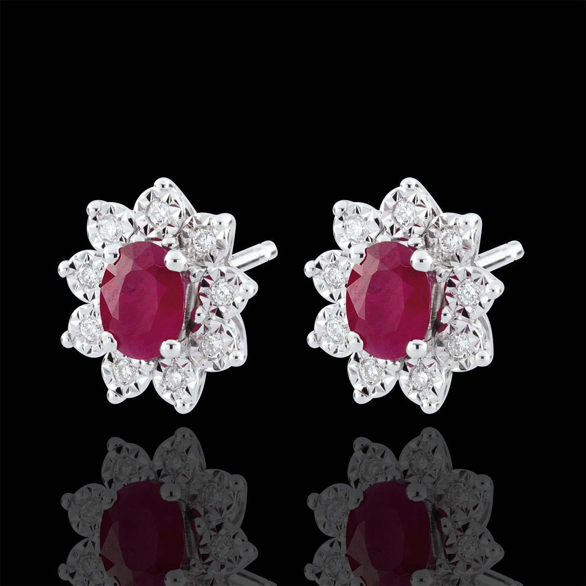 ETERNEL EDELWEISS Nº4Cercei cu şurub Flori - Aur alb 9 carate - Rubin sintetic, Diamante de laborator ID : 4963 4.7