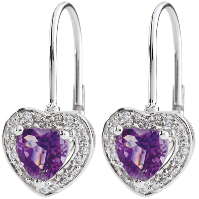 Cercei Inimă Fermecată - ametist - aur alb de 18K