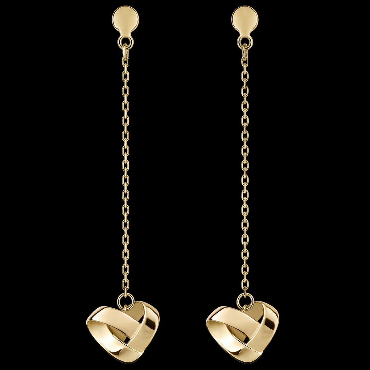 Inima, simbol emblematic al bijuteriei, reinterpretată de Edenly într-o versiune origami în care panglici din aur galben de 9 karate se împletesc cu originalitate și eleganță. Un model realizat sub forma unor cercei lungi cu lanț, fini și senzuali, care urmează cu delicatețe mișcările feței.