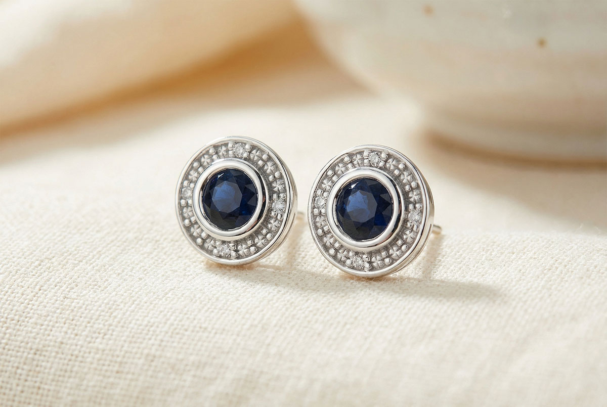 O miriadă de diamante precum stelele înconjoară întunecate şi ademenitoare safire albastre.