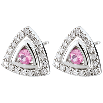 PASăRE DIN PARADIS NR. 13Cercei cu şurub - Aur alb 9 carate - Safir roz ID : 2347