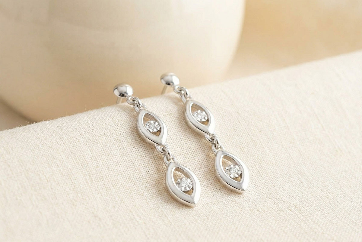 Două perechi de aur sub formă de marquise închid fiecare câte un diamant .