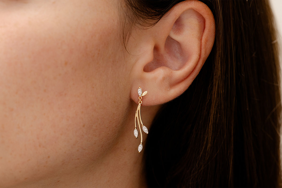 Cercei Vegetaţie Luxuriantă - aur alb şi aur galben de 18k şi diamante