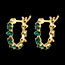 Acești cercei creolă din aur galben 9 carate sunt împodobiți cu un pavé de smaralde sintetice ce oferă o strălucire verde vibrantă. Adaugă o notă prețioasă și naturală ținutei tale.