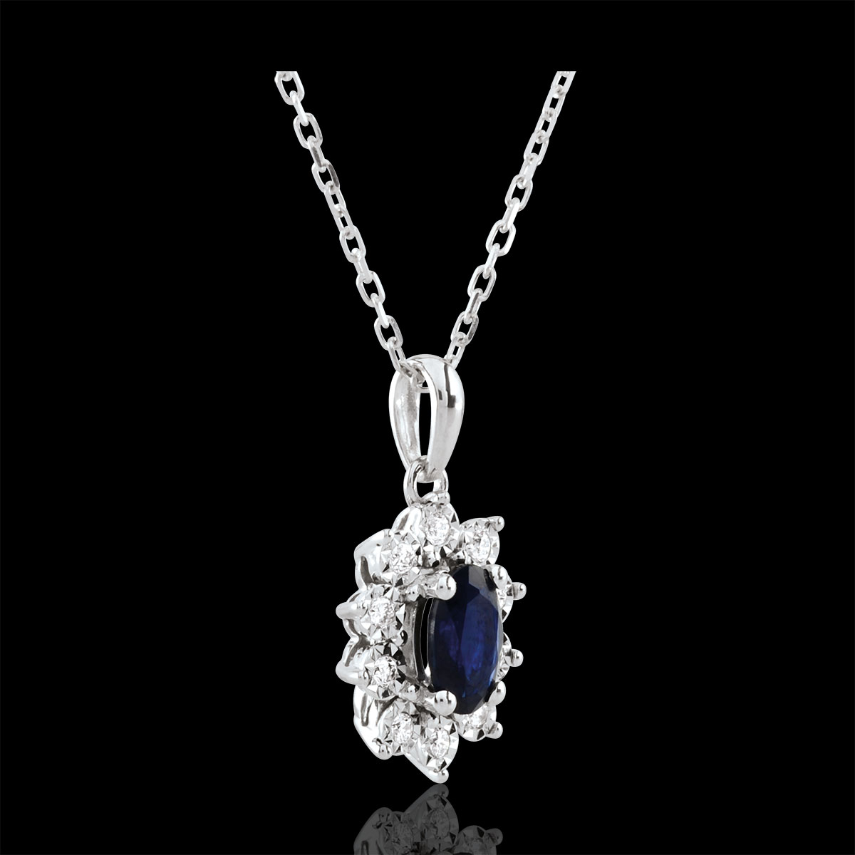ETERNEL EDELWEISS Nº1Colier Flori - Aur alb 9 carate - Safir sintetic, Diamante de laborator ID : 4959 4.7