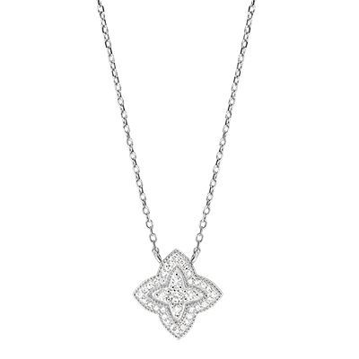Acest colier aliază strălucirea diamantelor și un design inspirat de flori.