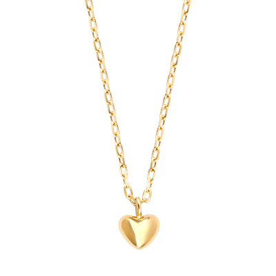 O inimă lustruită, suspendată de un lanțișor fin din aur galben.O bijuterie delicată și universală, perfectă pentru a simboliza dragostea de zi cu zi.