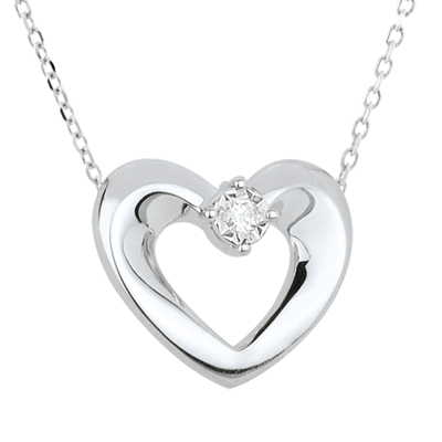 Colier inimă drăguţă aur alb de 9K şi diamant - 45 cm