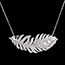 Acest colier elegant prezintă un pandantiv în formă de pană, realizat din aur alb de 18 carate, împodobit cu 44 diamante sintetice cu o greutate totală de 0,48 carate.