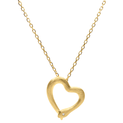 Un şarpe de aur galben cu lustru periat se încolăceşte în jurul unui lanţ fin şi feminin pentru a forma la final o inimă.