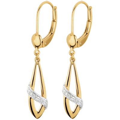panglici de aur alb şi diamante rimează cu aceşti cercei lungi din aur galben.