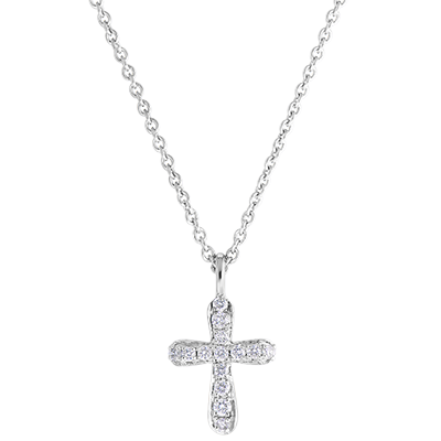 Un colier din aur alb cu o cruce încrutată cu diamante. O icoană evlavioasă revizuită într-un stil contemporan, puțin „rock” . Lanț cu lungimea de 45cm și inel de reglare la 42cm.