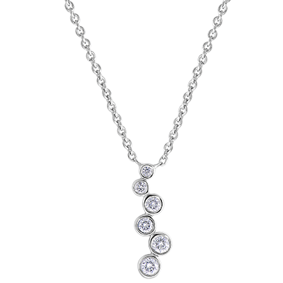 O serie de 6 diamante setate bezel asemeni unui șir de perle de rouă pentru un colier elegant și rafinat. Lanț cu lungimea de 45cm și inel de reglare la 42cm.