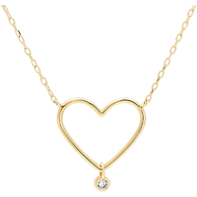 Un colier din aur galben împodobit cu un motiv inimă încrustat cu un diamant în mișcare, pentru un model plin de delicatețe și lejeritate.