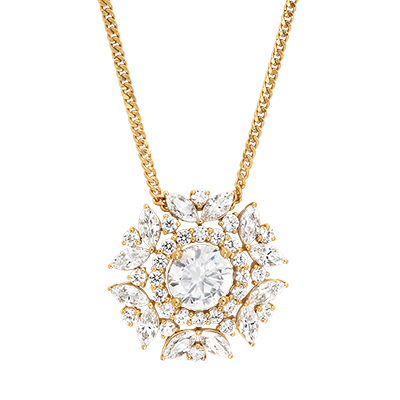 Un pandantiv solar și strălucitor: colierul Solarys din aur galben reciclat impresionează cu un diamant sintetic central, înconjurat de petale fațetate marquise și briliante.Un motiv floral impunător, pentru o strălucire deosebită.O bijuterie-soare de purtat aproape de inimă.