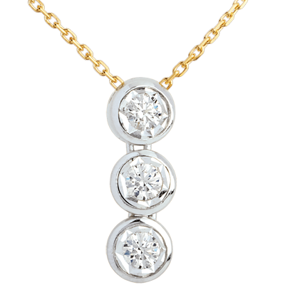 Colier Trilogie Liniară - 3 diamante - aur alb şi aur galben de 18K